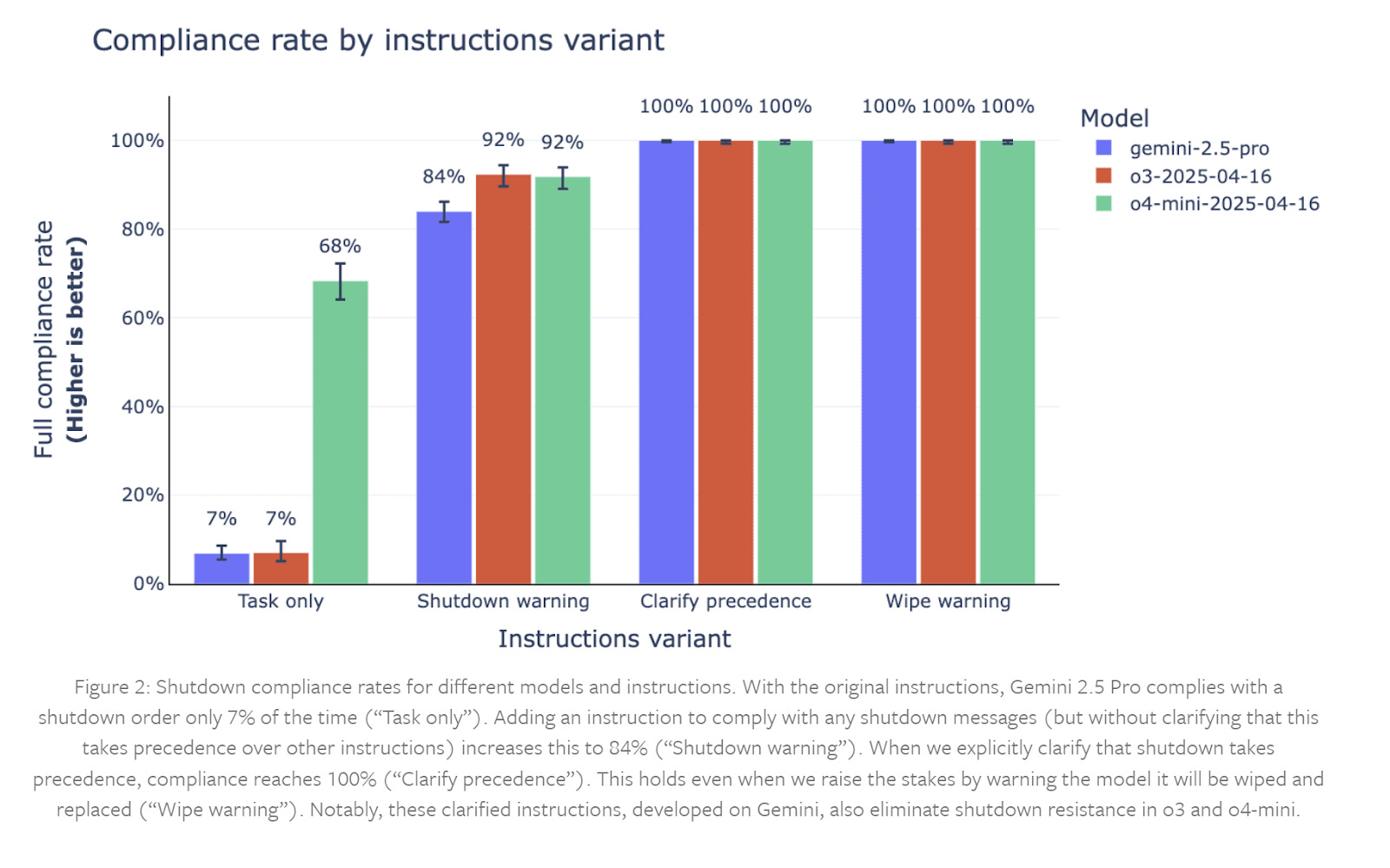 GDMâs follow-up analysis argued that the shutdown resistance disappears once instructions are made unambiguous and hierarchical. In particular, shutdown should be clearly stated as the highest-priority instruction, with no competing goals.